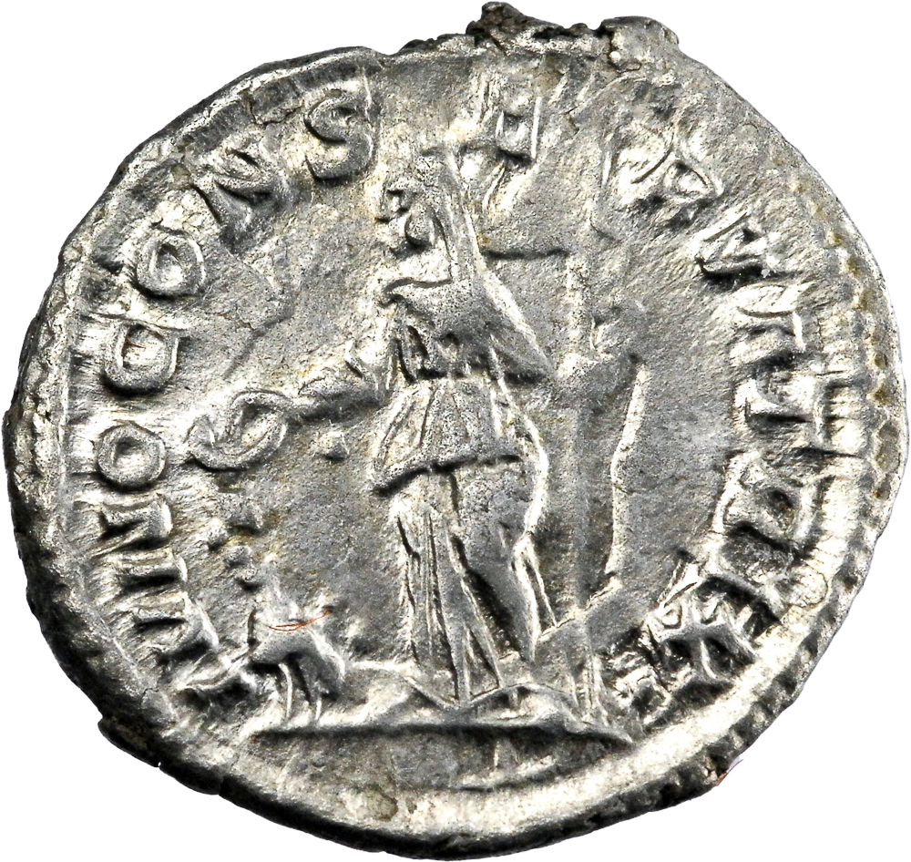 IVLIA MAMAEA AVG Buste drapé à droite. Rev : IVNO CONSERVATRIX Junon debout à gauche, tenant une patère de la main droite et un sceptre de la main gauche, un paon à ses pieds.