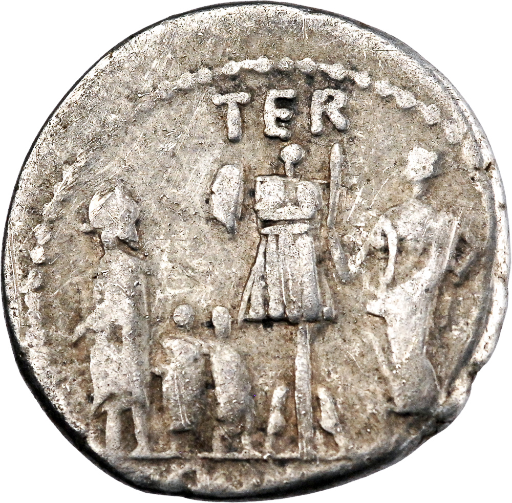 PAVLLVS LEPIDVS CONCORDIA Tête voilée et diadémée de Concordia à droite. Revers : Trophée, figure en toge à droite, trois captifs à gauche ; TER au-dessus, PAVLLVS en exergue.